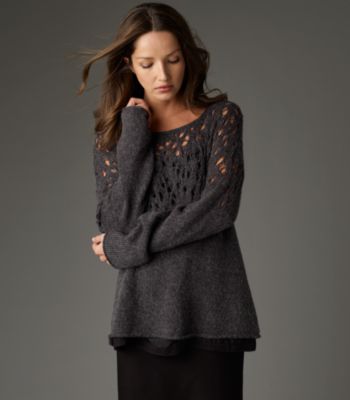 La particolarità dei suoi abiti è quella di essere molto semplici e comodi, ma da quando ha iniziato a cercare di avere clienti più giovani, le linee sono molto più attuali e ricercate. Adoro i materiali e l'irregolarità dei suoi cardigan; li vedrei benissimo con una tee vintage e stone washed jeans, alcuni accessori importanti e stivali da biker.